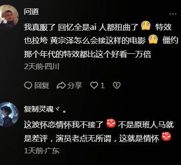 还有观众发现电影使用了AI制成片段,认为制作粗糙,剧情衔接差:“好难睇,好似食咗啖屎!”,电完全糟蹋了经典作品。